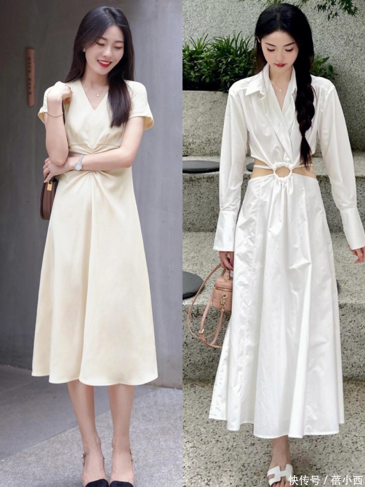 普通衣着绵薄一些更耐看,比如你不错在普通尝试用这种纯色的过膝连衣裙去凹造型,纯色的裙装穿在身上格外的谦恭和落拓。